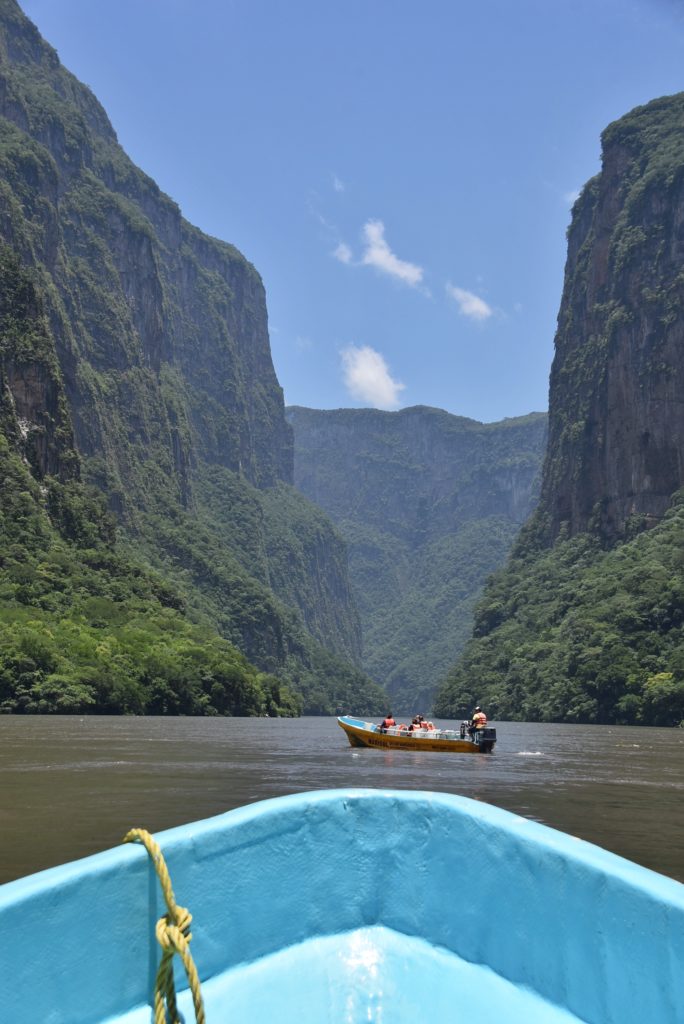 Il Canyon del Sumidero è una delle meraviglie dello stato del Chiapas. Navigando su una lancia lungo il fiume Grijalva incontriamo pareti alte fino a 1.000 metri, grotte e una ricchissima fauna (oltre ai numerosissimi pellicani abbiamo la fortuna di vedere ben tre coccodrilli).