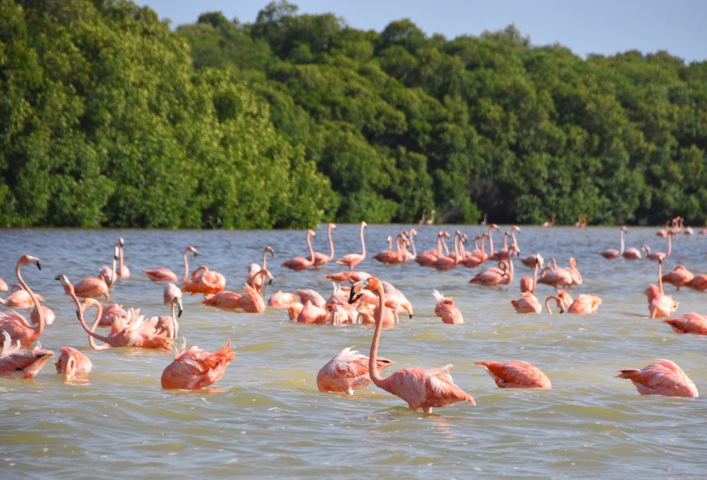 A pochi chilometri da Celestùn, un tranquillo villaggio che si muove a passo di tartaruga, saliamo su una piccola imbarcazione e, prima di accorgercene, siamo circondati da centinaia di fenicotteri rosa.