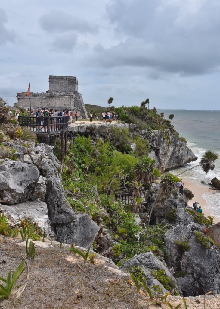 Le rovine di Tulum (in lingua yucateca “muraglia”) si estendono su di un’area molto estesa delle scogliere che si gettano a picco nelle acque del Mar dei Caraibi. Messo da parte il sogno di vedere le acque turchesi, ci aggiriamo tra gli edifici principali accompagnati dalle iguane e dai simpatici “coati”. Tra le attrazioni principali vediamo El Castillo, il Tempio del Dio Discendente e il Tempio del Dio del Vento.